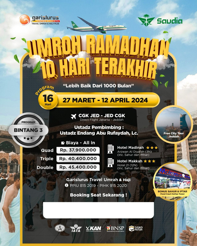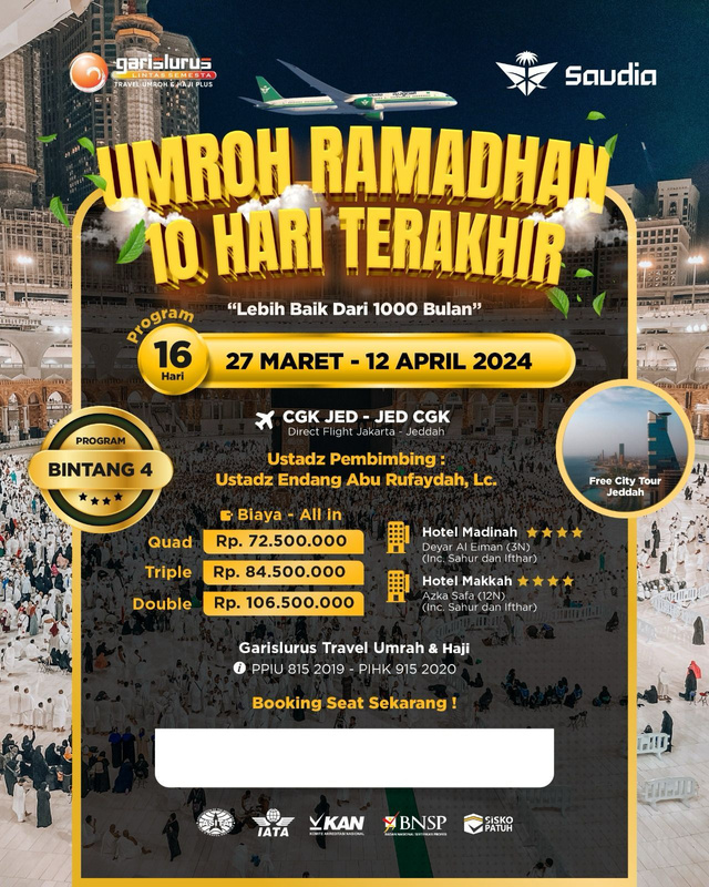 UMROH 10 HARI TERAKHIR RAMADAHAN BINTANG 3,4 dan 5